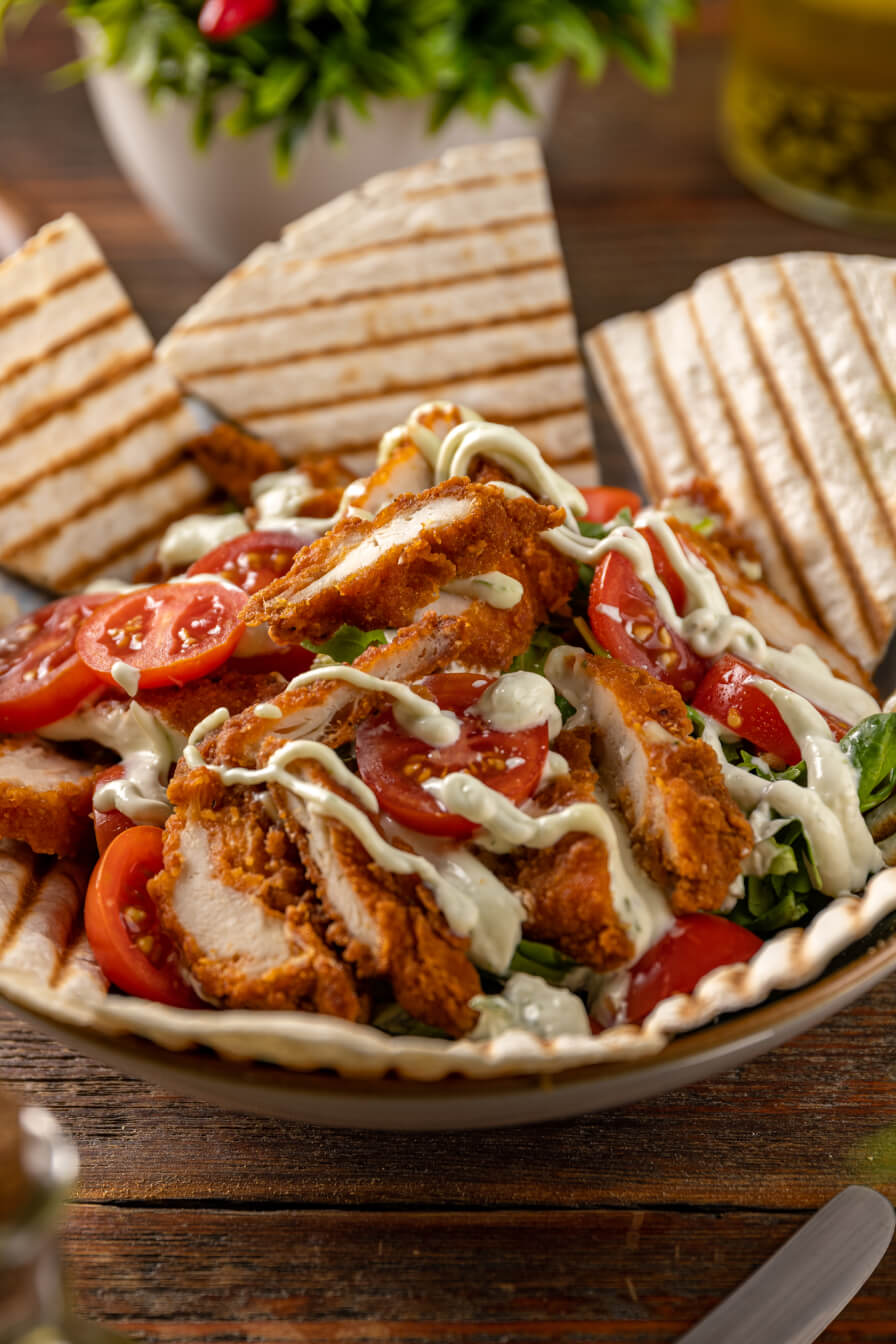 Smoked chicken, scallion whipped cream cheese, Duke's Mayo, red onion, pickle, tomato, romaine, house hot sauce, avocado...